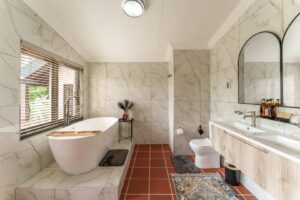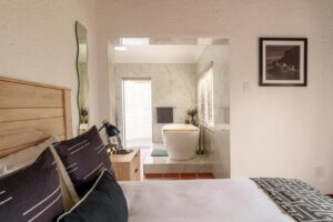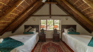 Designed for families and small groups, our three-bedroom Family Suite offers the perfect blend of space, comfort, and connection. Two ensuite bedrooms lead into a generous lounge with a fireplace, while a large covered patio overlooks the wilderness beyond. A loft bedroom makes this a relaxed yet refined retreat for those wanting to share the Thaba Metsi experience together.